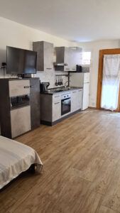 Caratterizzato da un’atmosfera accogliente e confortevole che vi farà sentire come a casa vostra, questo spazio di 33 mq è completamente arredato per garantirvi il massimo comfort durante il vostro soggiorno. Dotato di una cucina completamente accessoriata, completa di piastra a induzione, forno a microonde e una macchina per caffè Espresso, vi permetterà di preparare deliziosi pasti con facilità. Il letto matrimoniale e il piccolo divanetto offrono spazi per rilassarvi dopo una giornata trascorsa esplorando le bellezze della Toscana. Il bagno con box doccia e il piccolo ripostiglio con lavatrice e ferro da stiro aggiungono ulteriore praticità al vostro soggiorno.